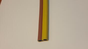 Invändigt  Svart SBR gummi.  Utvändigt Gul / Brun SBR gummi. Armering av polyestergarn