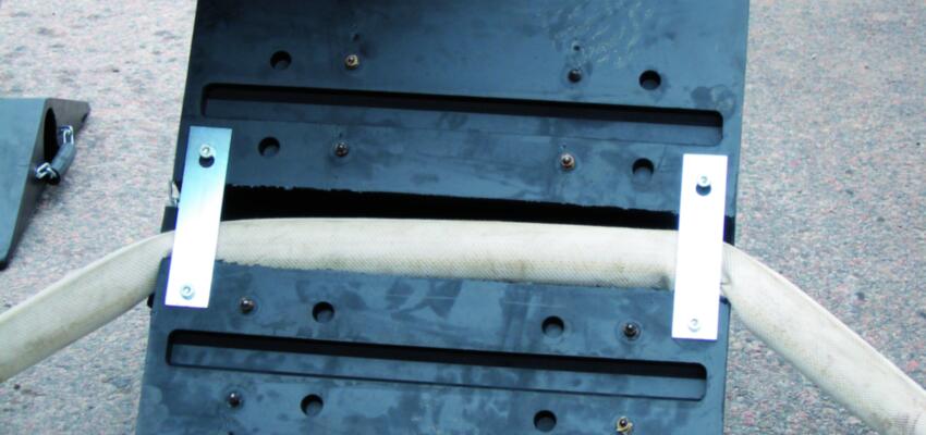 Slangbryggan har dubbel öppning som gör att du kan skydda 2 slangar samtidigt i samma överkörningsskydd.