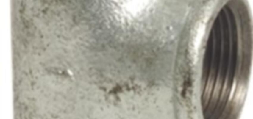 90° böj tillverkad av galvaniserat stål med 2x invändig gänga och utvändig-invändig.