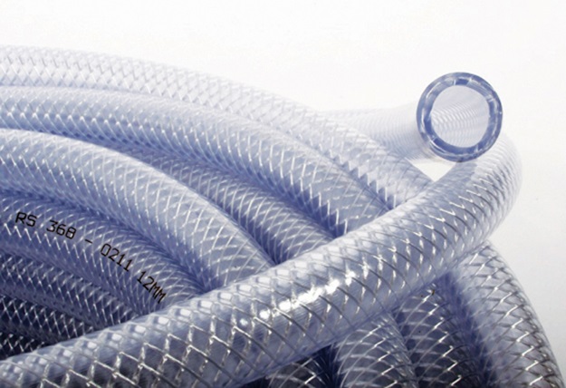 Innertub: Glasklar PVC. Yttertub: Glasklar PVC. Armering: Kryssarmerad polyesterfiber.