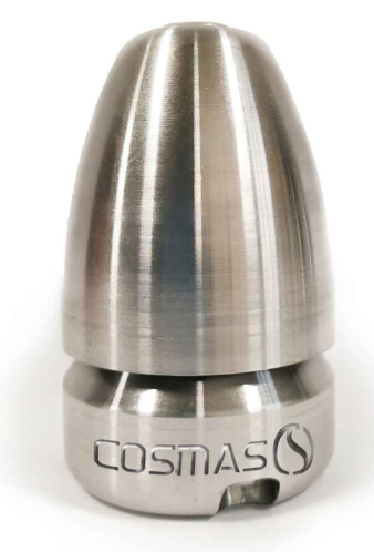 Högeffektivt munstycke i rostfritt stål med bakre keramiska insatser och borrade radiella insatser.