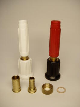 Vridbart gummerat spolmunstycke. Spolmunstycke KR är tillverkat av gjuten plast med utvändig gänga.